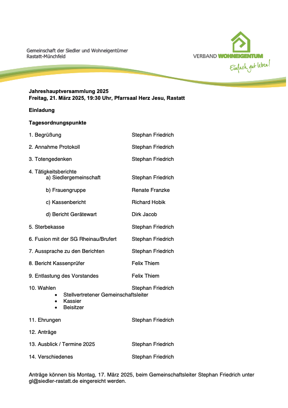 Jahreshauptversammlung 2025